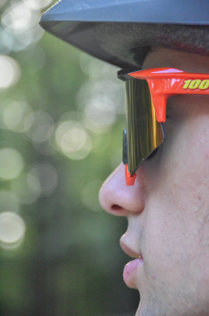 Wer noch „alte“ und biegsame Brillen gewohnt ist, wird das doch recht starre Gestell der 100% zu Beginn als etwas unangenehm empfinden. Von daher könnte das Gestell etwas mehr Flex vertragen, um sich somit mehr an den Träger anzuschmiegen. Hat man sich jedoch ein wenig an die 100% gewöhnt, passt sie wie ein guter Schuh und überzeugt auch mit gutem Halt auf ruppigen Trails ohne zu verrutschen.