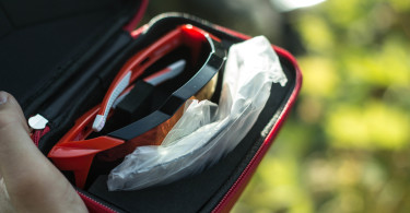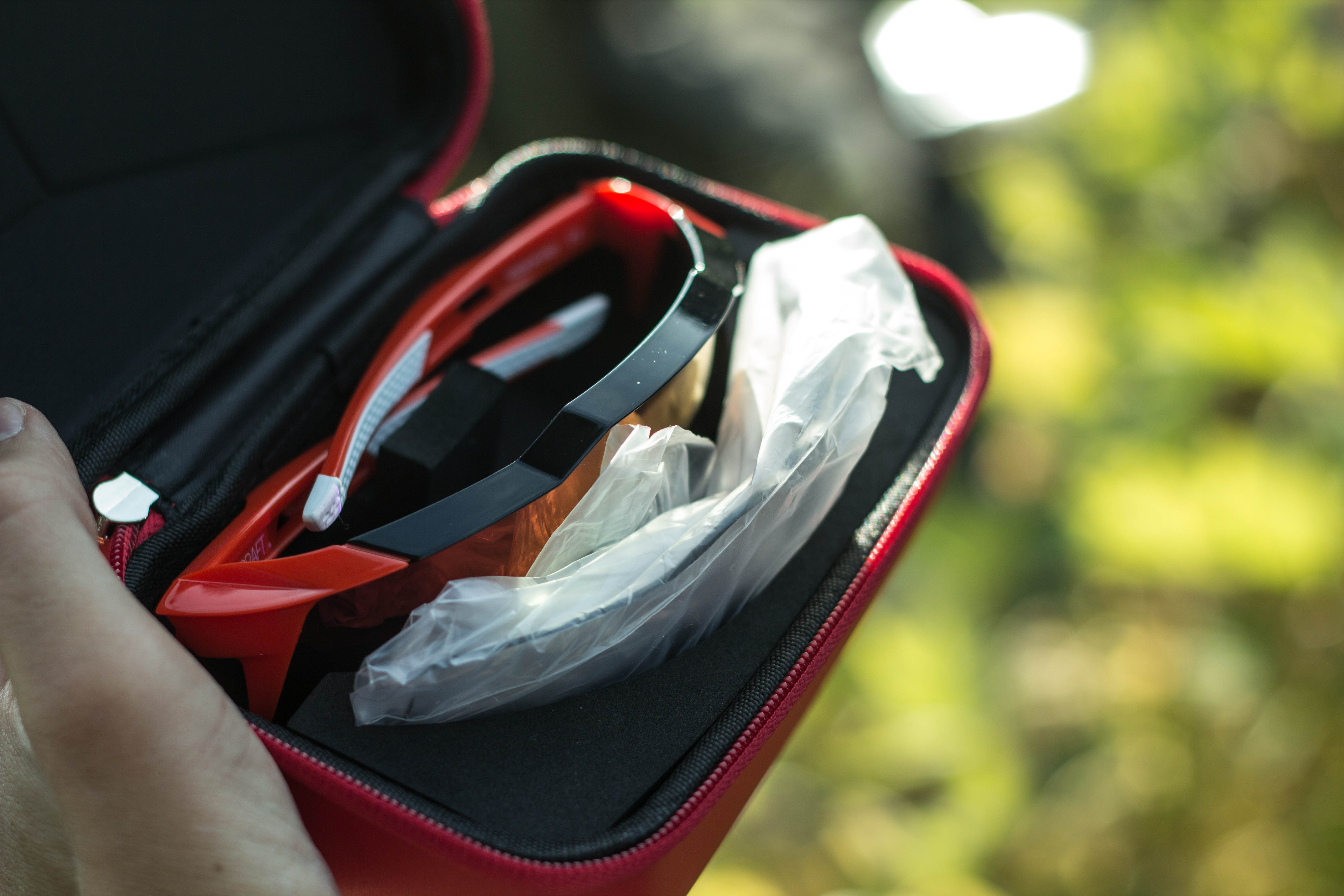 Des Weiteren liegt dem Käufer der Brille eine praktische Box bei, welche ein weiteres Glas, eine Schutzhülle und einen Ersatz-Nasen-Aufsatz mit sich bringt. Das ist eine feine Sache, denn wenn einmal die Tönung bei einbrechender Dunkelheit zu stark wird, lässt sich das Glas inkl. Aufsatz fix wechseln.