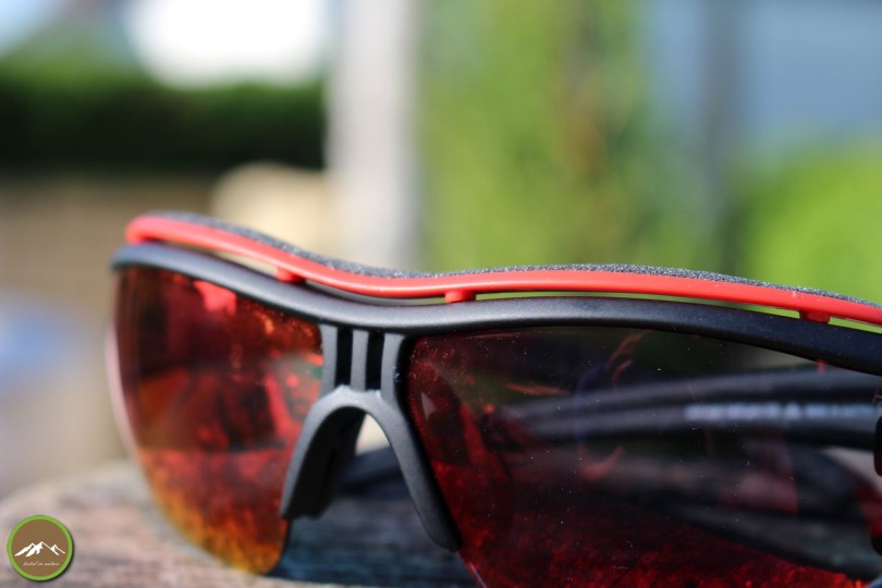 Der Gripp der Bügelgummierung ist gut. Die Brille sitzt und rutscht nicht. Weder auf den Ohren noch auf der Nase. Auch unter dem Radhelm gab es keine Druckstellen.