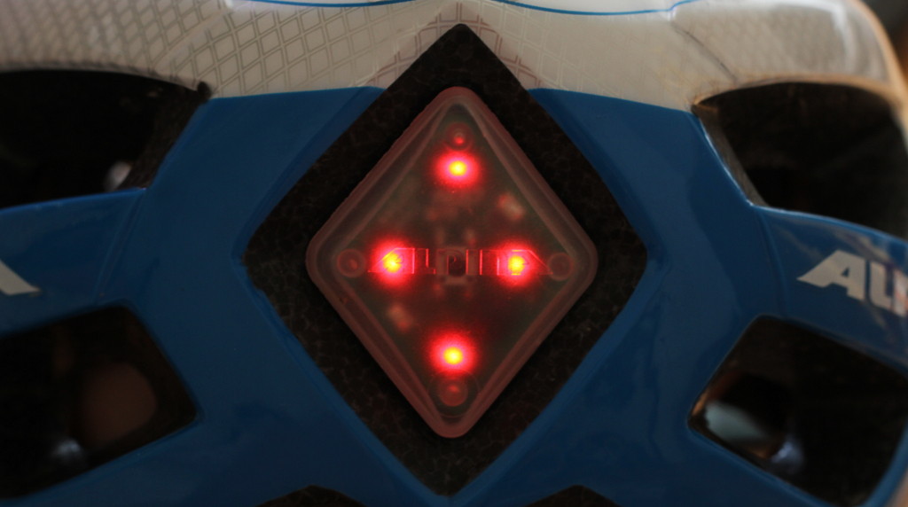 In den Helm ist ein mit Magneten gesichertes Blinklicht integriert. Vor der Polizei wird man damit wohl keine guten Karten haben jedoch ist es in der Dämmerung und als zusätzliches Licht sicher recht nützlich. Man kann beim Licht zwischen zwei verschiedenen Blink Modi und einem Dauerleuchten wählen.