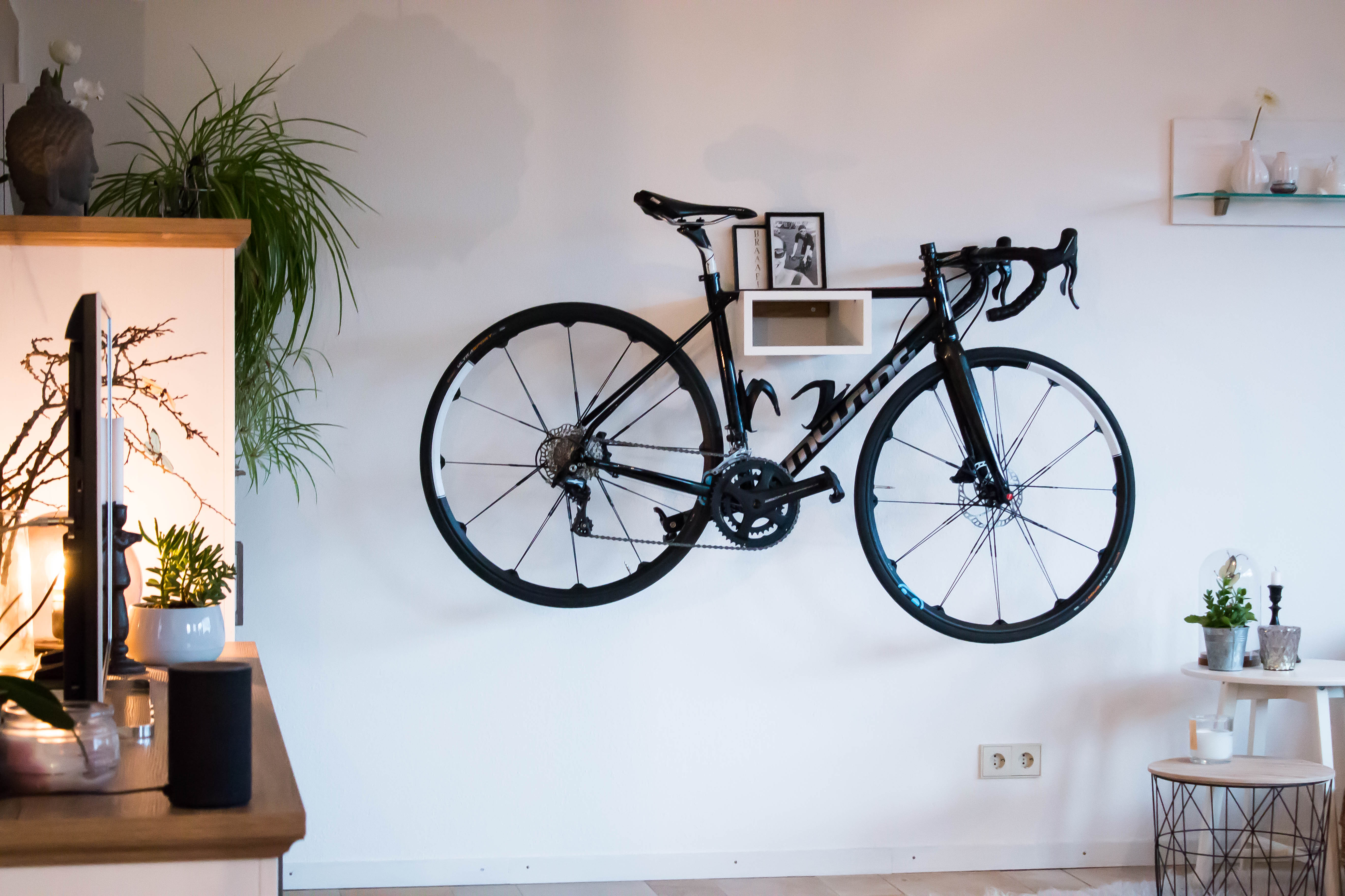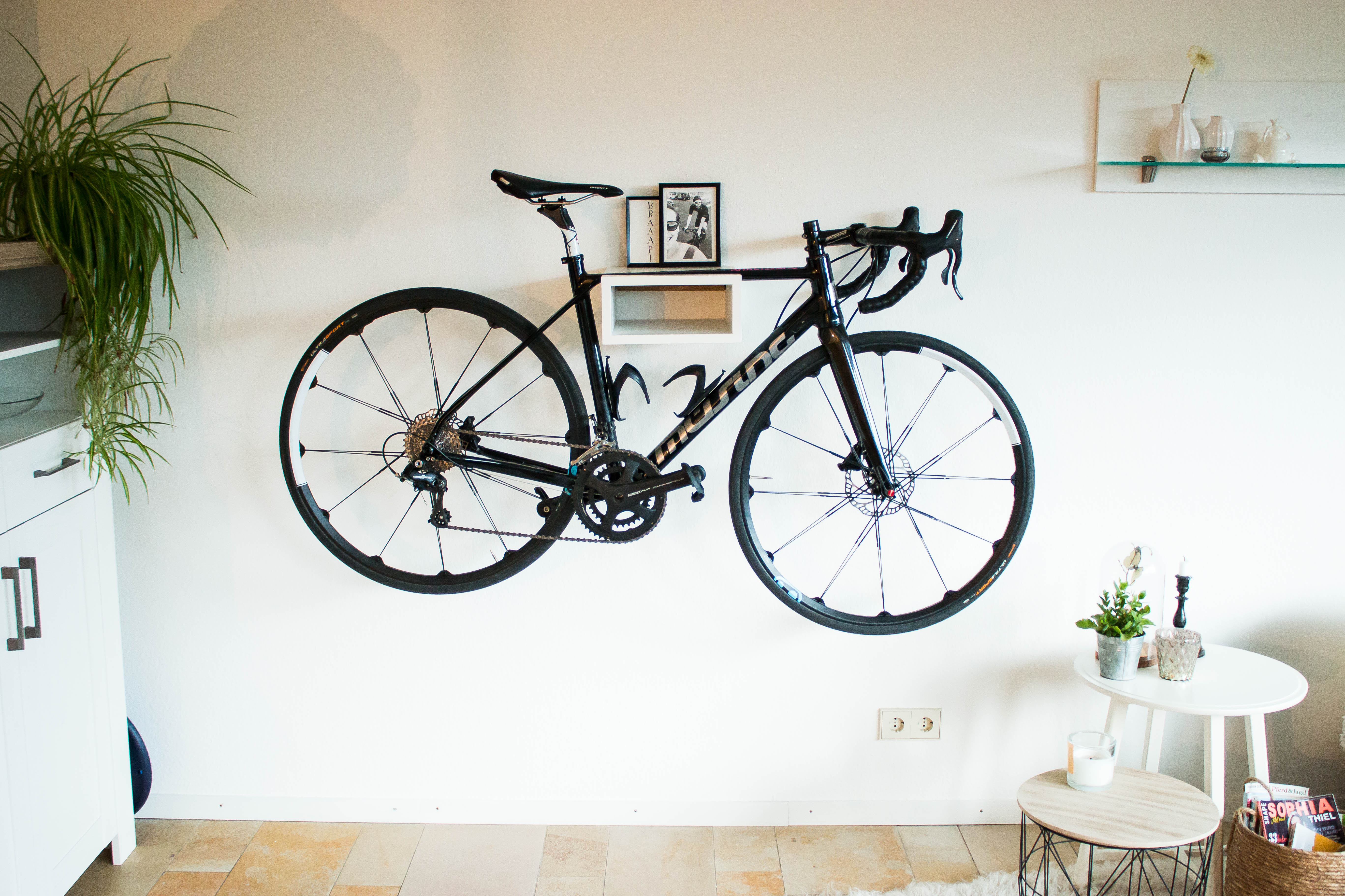 Mit zwei Bilderrahmen haben wir Oskar noch einen persönlichen Touch verliehen. Die obere Fläche eignet sich bestens zum Abstellen von kleinen Töpfen, Büchern oder Bildern. Die Verarbeitung und Optik lässt wie beschrieben keine Wünsche offen und setzt gekonnt jedes Bike in Szene!