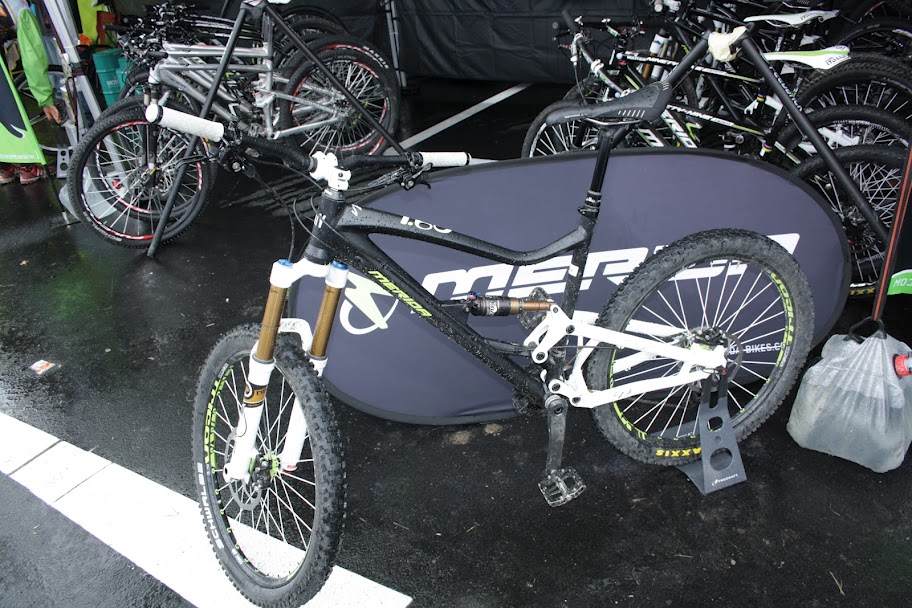 Neben dem 29er stellte Merida außerdem das neue Enduro One-Sixty vor. Das Gewicht des Rahmen soll bei unter 3kg liegen! (exkl. Dämpfer) Negativ anzumerken ist jedoch die unsaubere Zuführung ohne innenverlegte Züge. Dies hätte schöner gelöst werden können, wie man es von Merida gewohnt ist.