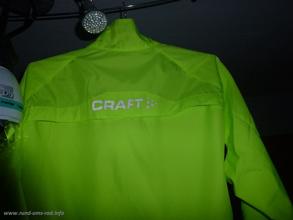 Auf dem Rücken sind lediglich der “Craft”-Schriftzug sowie 5 schmale Streifen auf der Rückentasche reflektierend. Hier wäre es sicherlich besser gewesen, einen breiten Streifen auf dem Rücken anzubringen. Das mag zwar optisch nicht unbedingt der Renner sein, aber in Bezug auf die Sicherheit und Erkennbarkeit bei Nacht bedeutend besser.