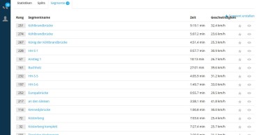 Im Kartenreiter Statistik werden noch einmal die Daten in Zahlen dargestellt. Im Kartenreiter Splits werden, wenn vorhanden, gefahrene Runden betrachtet, während unter Segmente einzelne Streckenteile betrachtet werden.