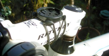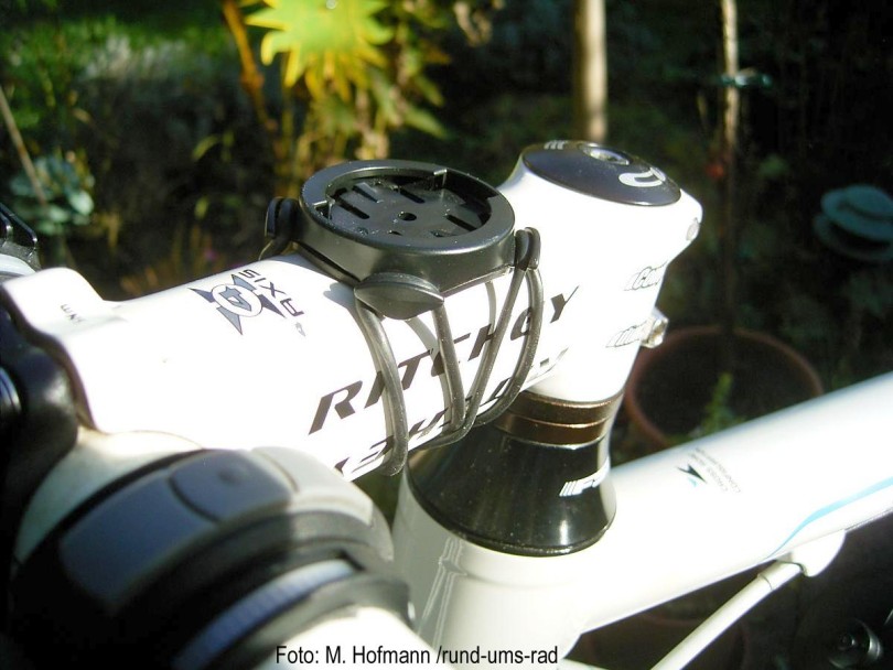 Garmin_Edge_1000_10_Befestigung_VorbauDie schnellste und einfachste Montage ist die mit zwei gekreuzten Gummis gesicherte Vierteldrehhalterung. Verschieden starke Gummiunterlagen ermöglichen die Montage an verschiedenen Rohrdurchmessern. Aufgrund der Größe des Edge 10000 hat sich hier die Befestigung am Vorbau am besten bewährt.