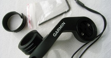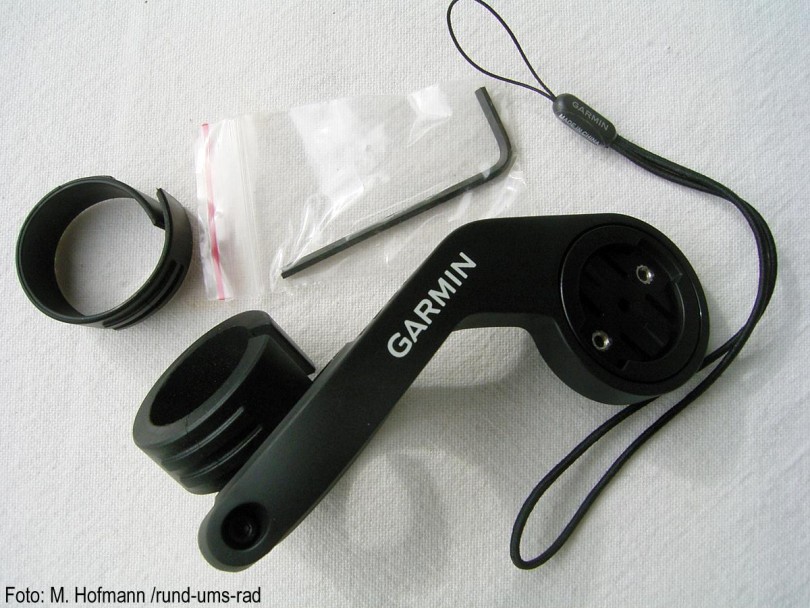 Garmin_Edge_1000_3Der schwarze Verpackungskarton beherbergt außer dem Edge 1000 noch ein reichhaltiges Zubehör. So befinden sich neben der durch verschiedene Gummiringe gesicherten Vierteldreh-Halterung auch noch ein stabiler Aero-Aufsatz sowie die Sensoren für Trittfrequenz, Geschwindigkeit und Herzfrequenz inklusive Gurt. Nicht zu vergessen ein USB-Kabel zum Verbinden mit dem PC und zum Aufladen des internen Akkus.