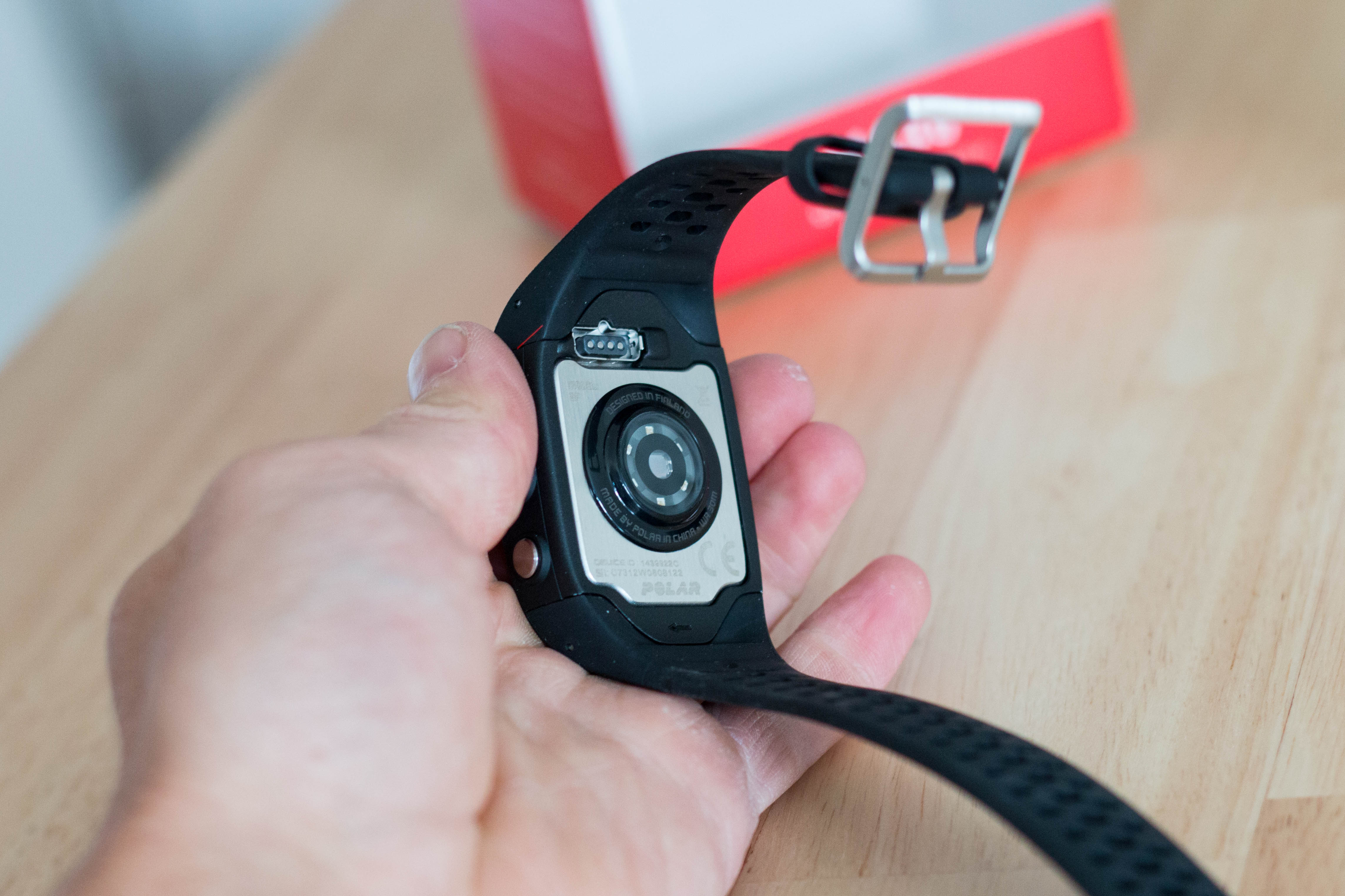 5 Tasten, griffiges Silikonarmband und kontrastreiches Display. Die Maße der Uhr sind aufgrund der integrierten Pulsmessung etwas klobiger, fast schon kantig. Das formschöne Silikonarmband verleiht ihr dennoch ein ansprechendes Design. Erst auf der Rückseite zeigt die Uhr ihre Besonderheiten. In einer Erhebung am Handgelenk bietet die Uhr einen optischen Pulsmesser, der Brustgurte getrost ablösen soll. 6 LEDs sollen laut Hersteller zuverlässige Werte liefern. Wer lieber zum Pulsgurt greift, hat weiterhin die Möglichkeit diesen per Bluetooth zu koppeln.