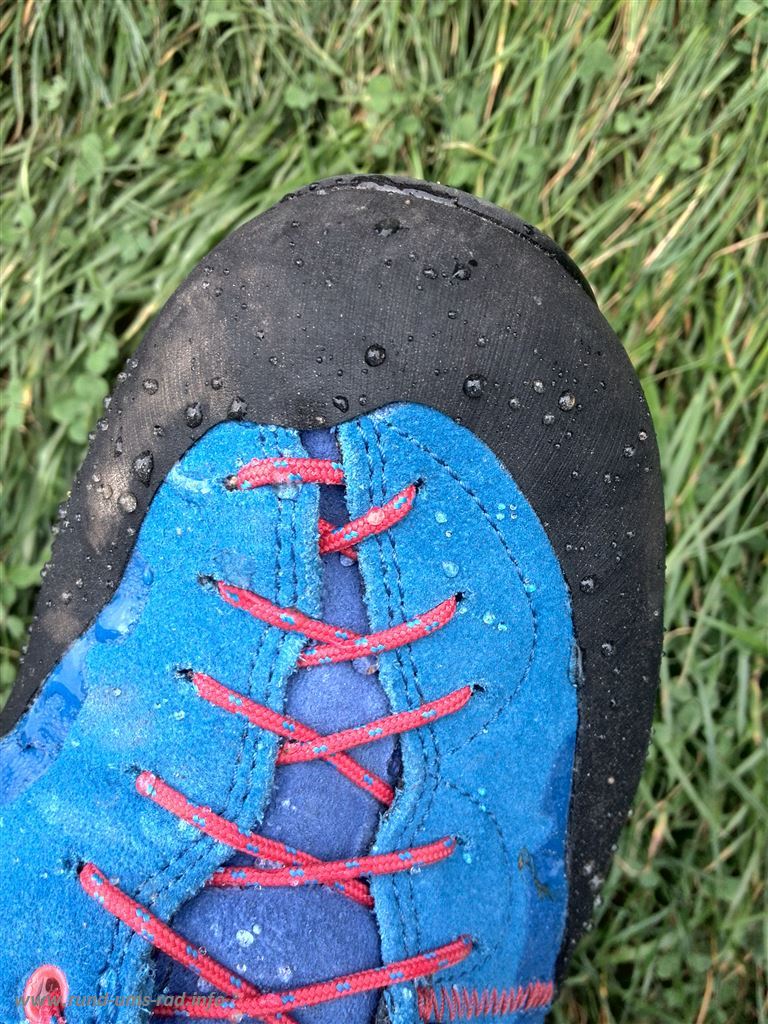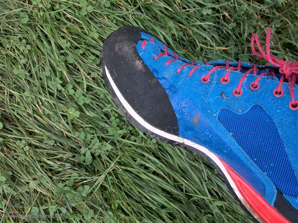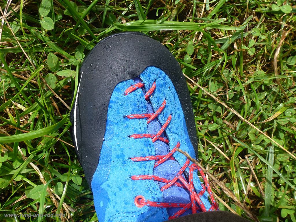 Interessant ist auch die asymmetrische Schnürung welche für eine perfekte Passform sorgen soll. Zugegeben, der Schuh passt sich gut dem Fuß an, ob das nun an der Schnürung liegen mag, will ich jetzt mal so nicht behaupten. Ich denke da kommen eigentlich viele Faktoren zusammen neben der Schnürung wie z.B. die Fußform an sich. Klar es gibt diverse Schnürtechniken, also warum auch nicht asymmetrisch.