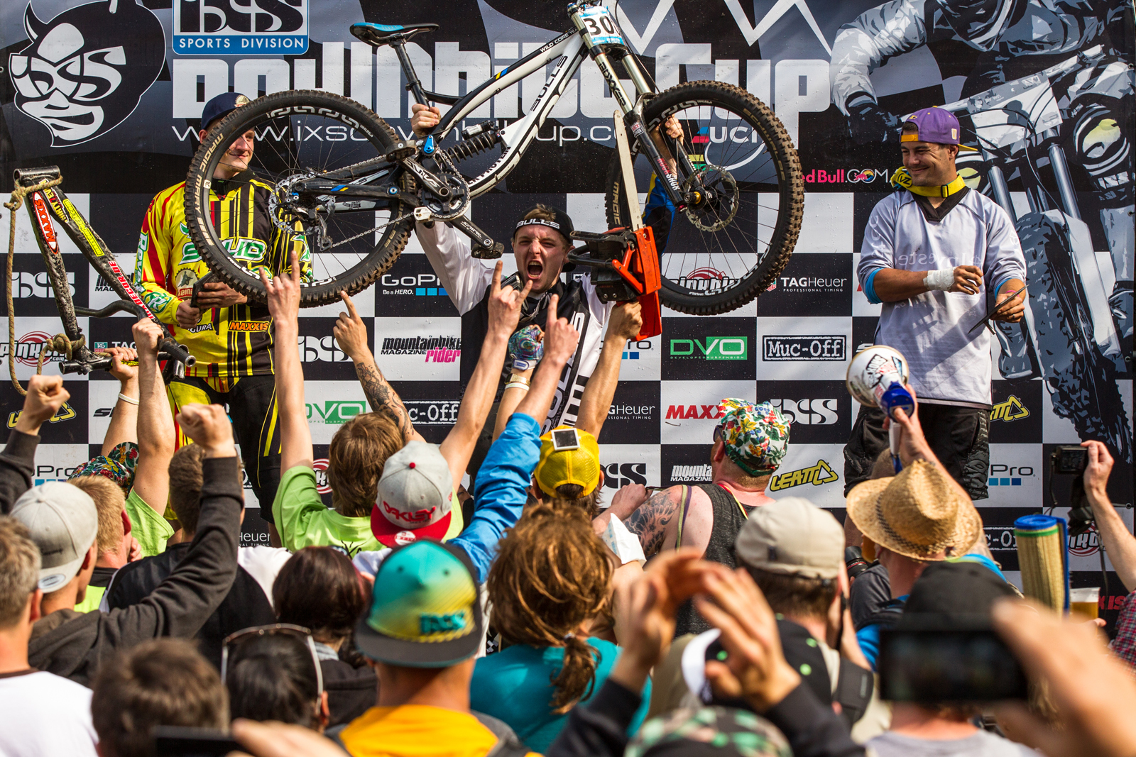 Doch dann kündigten die Zuschauer im Wald Benny Strasser bereits an. Es schien knapp zu werden, ganz flach kam er hereingesprungen, überquerte die Ziellinie und die Anzeigetafel offenbarte ein Plus von 1,1 Sekunden. Damit gewann Christian Textor mit einer Zeit von 2:06.003 Minuten sein erstes iXS Rennen. Benny Strasser, der Sieger des Vorjahres, wurde Zweiter und Johann Potgieter konnte den Platz als Dritter verlassen.