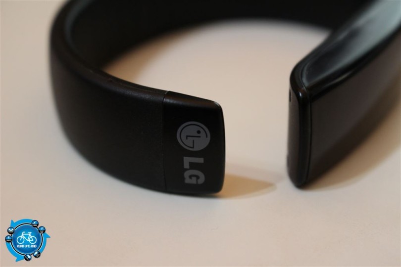 Das LG Lifeband ist im Grunde ein nicht ganz geschlossener Ring, was zunächst den Vorteil hat, dass man die Öffnung etwas aufbiegen kann um das Band dann über den Arm zu streifen. Doch dieses Feature hat gleichzeitig den Nachteil, dass das Band nicht so gut sitzt wie man es von einer Armbanduhr gewöhnt ist. Mit der Öffnung bleibt man gerne am Saum des Oberteiles hängen und dann verdreht sich das Band etwas.