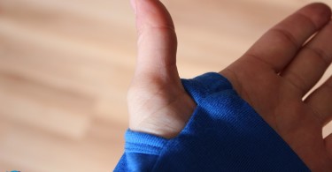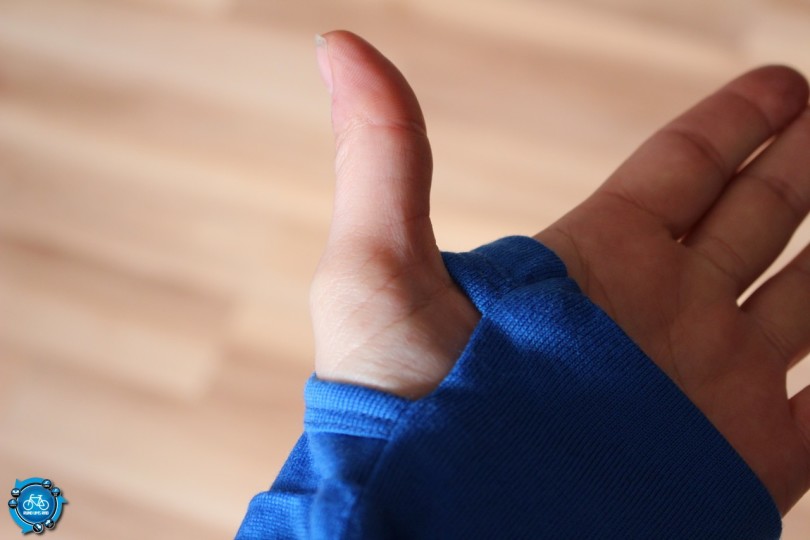 Auch ganz praktisch sind die eingenähten Daumenschlaufen. Gerade auf dem Bike verhindern diese, dass die Ärmel nach oben rutschen könnten. Aber auch bei Wanderungen im kühlen Wald sind diese sehr gut, da man dadurch immer die Ärmel unten hat und die Handgelenke gut bedeckt sind.