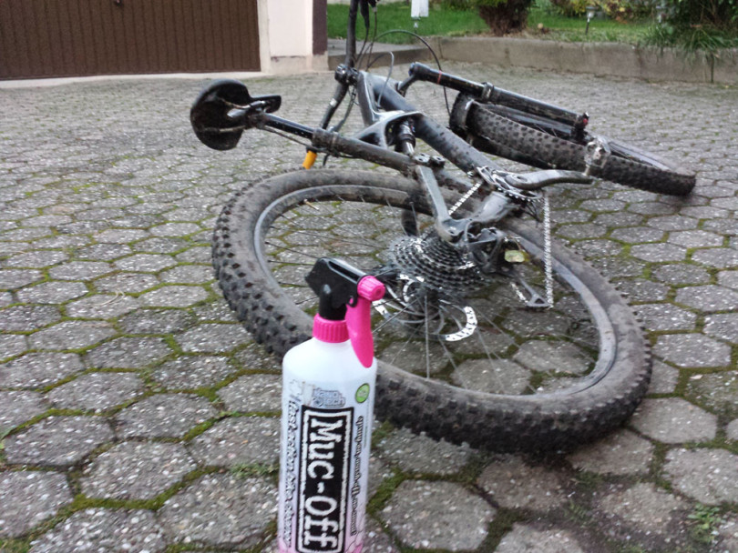 Die Reinigung von mit Schlamm und vergleichbarem verunreinigten Stellen ist ausgezeichnet, zurück bleibt ein sauberes Bike.