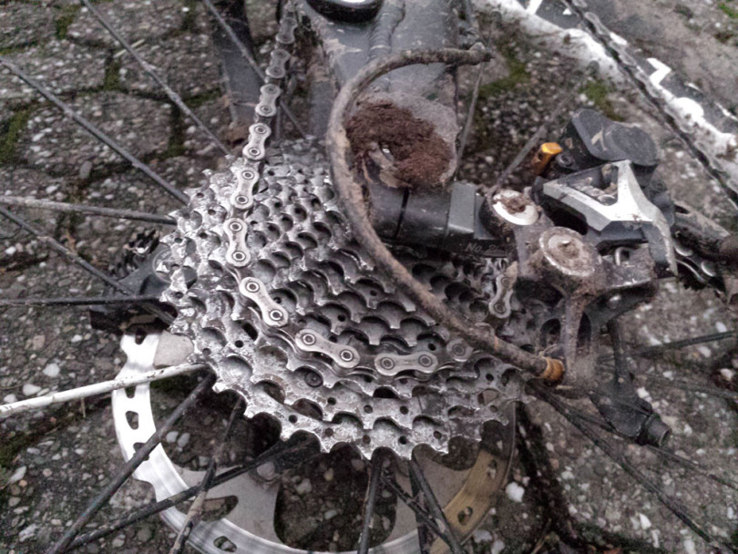 Die Anwendung erfolgte genau nach der oben beschriebenen Prozedur. Wie das Ergebnis ist, könnt ihr den Bildern entnehmen. Nach einer schönen Schlamm- und Materialschlacht war das Ritzelpaket sehr verdreckt und voll mit Kettenschmiere.