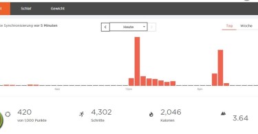 Hierbei handelt es sich zunächst um einen Schrittzähler der aber auch die Schlafzeit aufzeichnet. Über die App auf der Uhr kann man die durchschnittliche Schlafzeit und auch die wöchentlichen Aktivitäten anzeigen lassen. Zudem kann man die aktuell zurückgelegten Schritte am Tag ablesen.