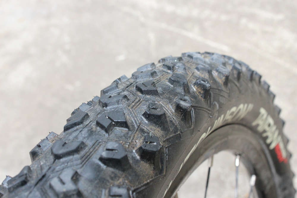 Die Idee hinter dem Taipan war es, einen grobstolligen XC Reifen für zahlreiche Bedingungen zu entwerfen: Ob trocken oder nass, felsig, wurzlig oder Waldautobahn. Neben den Seitenstollen fallen auch die Mittelstollen 3mm hoch aus, sollen jedoch weiterhin geringen Rollwiderstand bieten. Die Winkel der Stollen sind zudem so gewählt, dass sie beim Bremsen viel Traktion bieten. Mit einem Gewicht von 627g (29×2,1″) in der leichten Tubeless Ready Version ist er nur wenige Gramm schwerer als der Cobra und spielt in der Liga eines Continental Mountain King oder eines Schwalbe Nobby Nic. (29×2,25: 605g) Der Reifen fällt auffällig breit aus, breiter als der Cobra. Die Montage des Reifens ging schnell und problemlos von der Hand.