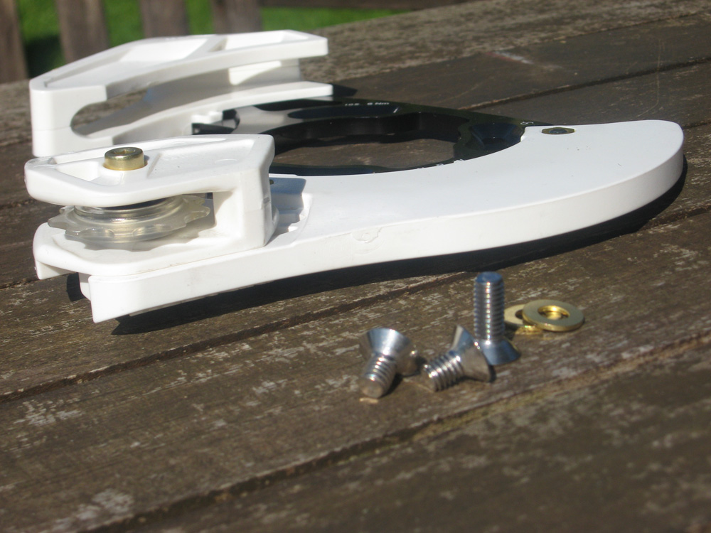 Die Verschraubung wird später durch die Löcher im Kettenblatt durchgeführt.