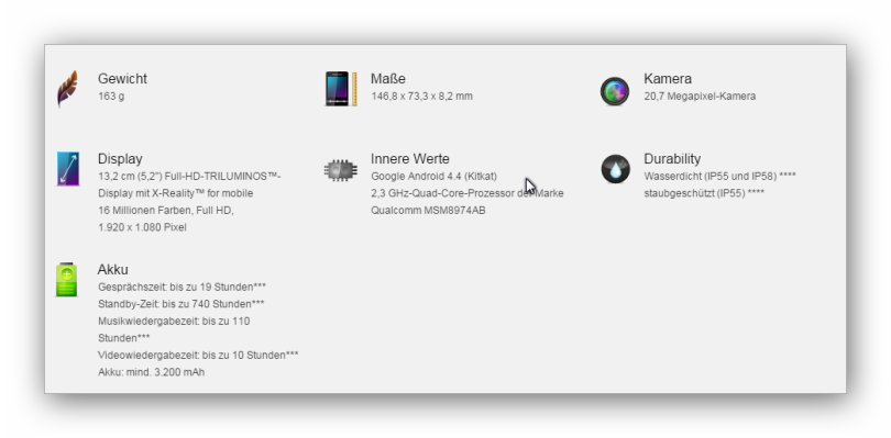 Da Sony auf deren Webseite eine ganze Reihe von technischen Daten für das Xperia Z2 bereithält, beschränken wir uns hier lieber auf die Grundfunktionen und verweisen am Ende der Auflistung auf die Webseite von Sony.