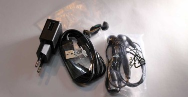 USB-Kabel, Steckeradapter und ein was auf die Ohren in Form von In-Ear-Kopfhörern. Dazu noch die üblichen Garantiebestimmungen und Kurzbeschreibungen.
