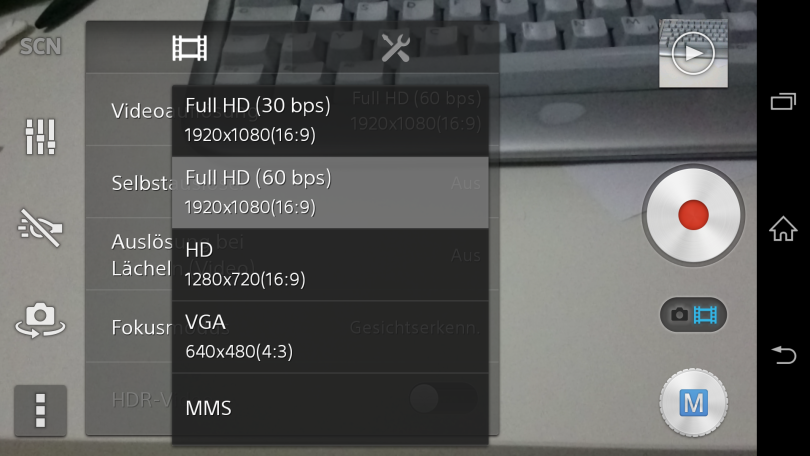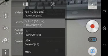 Weiterhin hat man noch die Möglichkeit bei „normalen“ Videoaufnahmen, die Bildrate auf 60fps hochzusetzen. Auch hierdurch kann man später mit einem Videobearbeitungstool die Aufnahmen verlangsamen.