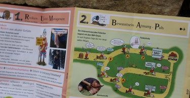 Wirklich toll aufgemacht und als wichtig wurde der Spickzettel erachtet. Er ist witzig aufgemacht, so dass man ihn tatsächlich auch mal im „Normalzustand“ in die Hand nimmt und durchliest. Auch im Notfall, wo man keine Nerven fürs Kleingedruckte hat, sind die Bilder aufschlussreich und man findet schnell die passende Passage.
