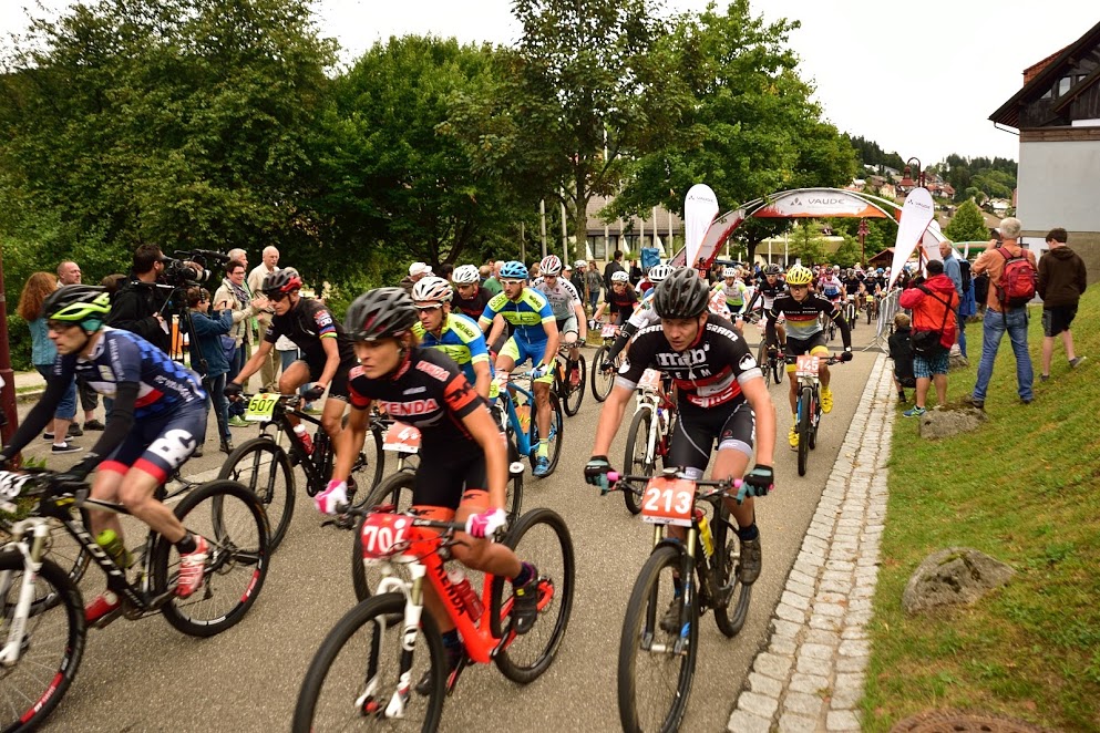Erneutes Wetterglück hatten die verbliebenen 407 Starter der zehnten VAUDE Trans Schwarzwald, die sich um 10 Uhr zur vierten Etappe in Schonach auf den Weg ins Etappenziel nach Donaueschingen machten. Keine Regenschauer und angenehme Temperaturen um die 20 Grad bildeten die Grundlage für eine schnelle Etappe über 75 Kilometer und 1850 Höhenmeter.