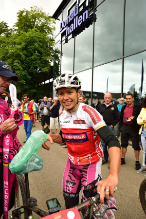 Von hinten kämpfte sich allerdings der dritte Centurion VAUDE Biker Jochen Käß zum Spitzentrio nach vorne, so dass es wie am Vortag zu einer Sprintentscheidung auf der dieses Mal flachen Zielgeraden vor den Donaueschinger Donauhallen kam. Und wieder hatte Simon Stiebjahn die schnellsten Beine und siegte hauchdünn in 2:46:13 Stunden vor Markus Kaufmann, Daniel Gaismayr und Jochen Käß, der damit seinen ersten Podestplatz ganz knapp verpasste.