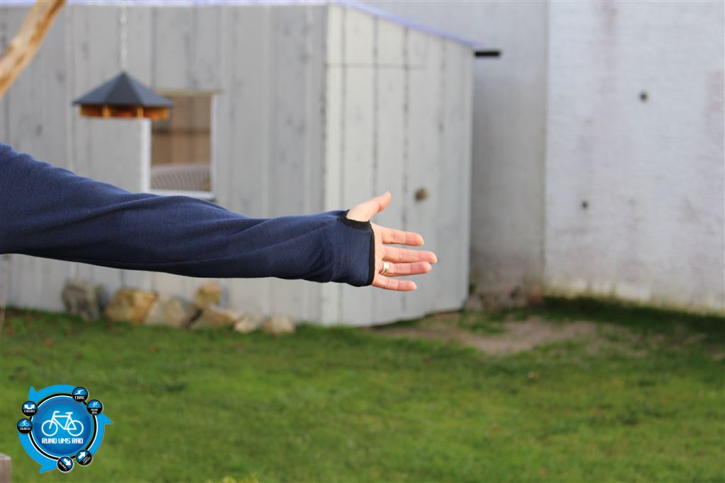 Zudem hat der Hoodie eine Seitentasche mit Reißverschluss und wasserabweisendem Inlay, damit der Inhalt vor Schweiß geschützt ist. Durch lange Bündchen mit elastischem Daumenloch werden auch die Handrücken ggf. vor Kälte geschützt.