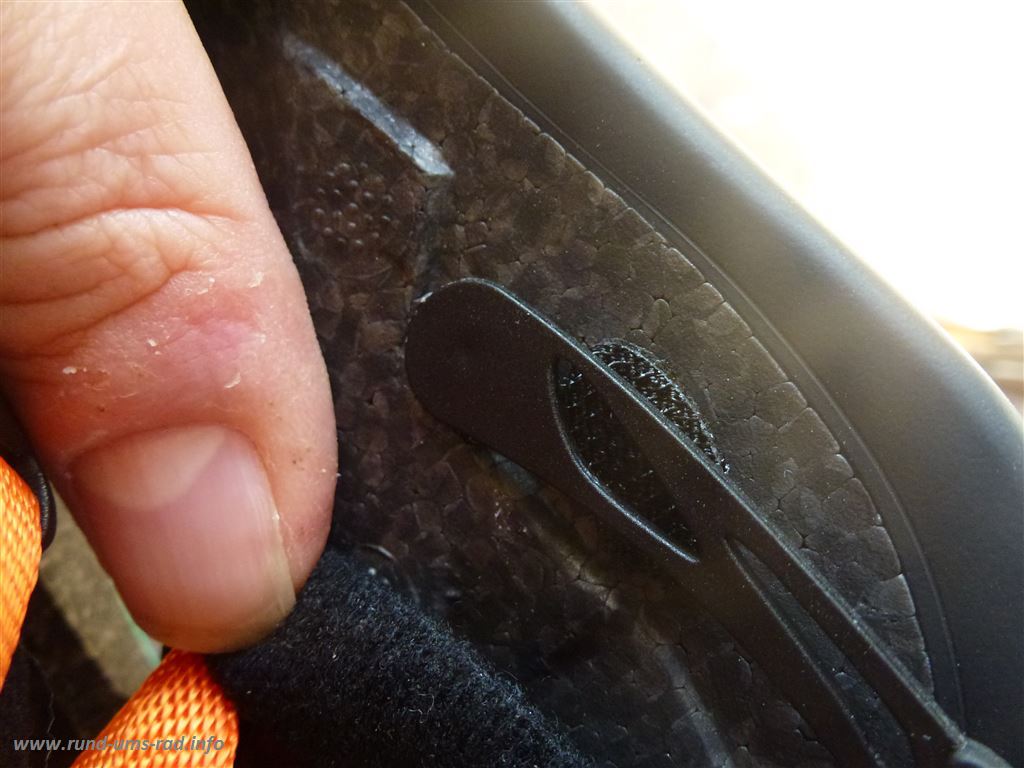 Hier wurde das Pad leider unter die Halterung im Bereich des Tri-Fit Verstellsystems angeklebt und kann somit die Auspolsterung nicht fixieren.