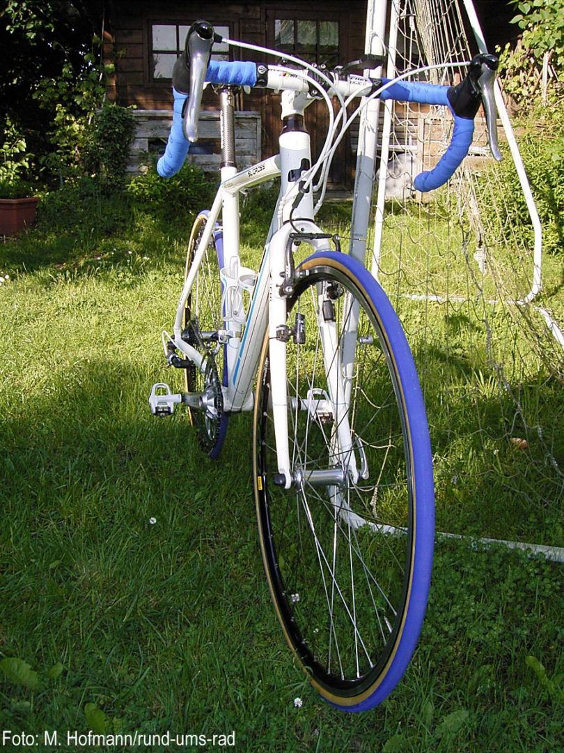 Da der Master 23 außer mit schwarzer Lauffläche auch noch in drei weiteren Farben erhältlich war, habe ich ihn mir passend zu meinem Rad mit blauer Lauffläche geholt.