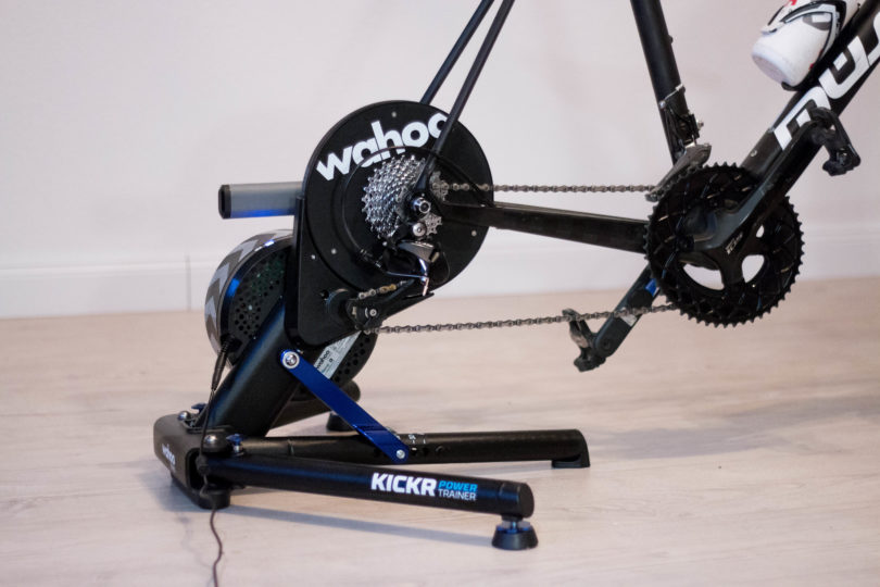 Bereits die leichte Montage konnte überzeugen. Standfüße ausklappen, Rad einhängen – danach mit dem PC oder per Bluetooth mit dem Tablet verbinden und schon es kann losgehen. Für die Montage im Rad bietet Wahoo Adapter für verschiedenste Achsstandards an. (Boost Standard ab den aktuellen KickR Modellen möglich). Verschiedene Laufraddurchmesser (28″, 26″, 29″) sind ebenfalls kein Problem.