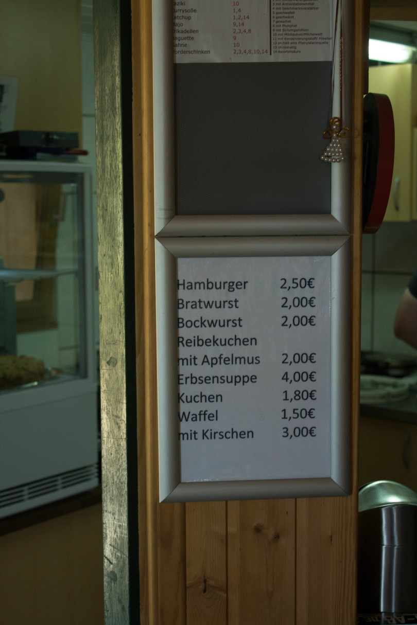 Neben den äußerst günstigen Preisen für die Liftkarten überzeugt auch das Bistro mit einem kurzen und knackigen Angebot an Speisen und Getränken zu einem ähnlich attraktiven Kurs. Wie es dem Biker gefällt, finden sich auf der Karte deftige Speisen wie Hamburger und Bratwurst, wer es lieber etwas süßer mag wird hingegen mit Kuchen oder Waffeln glücklich. Geschmeckt hat uns beides!
