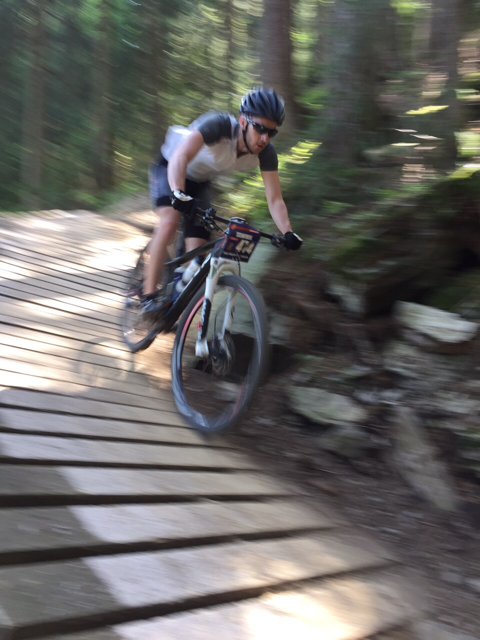 Den ersten Anstieg bewältigen wir mit der Horbergbahn, bis wir dann fast schon in Cross-Country Manier von der Gondel in den ersten Berg sprinten. Kräfte einteilen? Wird schon gehen, heute stehen ja nur etwa zwei Stunden an und wenn Dominik seinen fünften Platz im Gesamtklassement verbessern möchte, muss es halt schonmal wehtun.