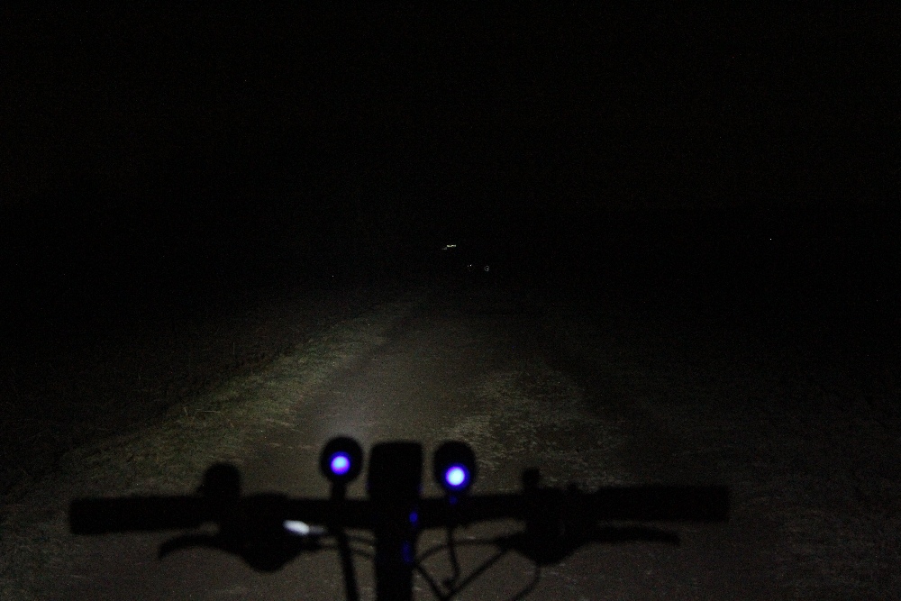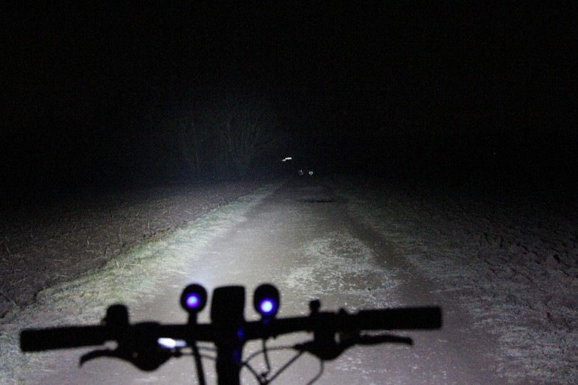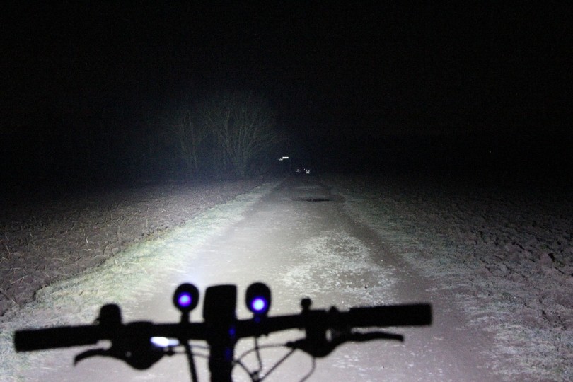 Gleich vorweg: Wir sind in der Dunkelheit keine Trails gefahren. Aber ins Gelände haben wir uns schon gewagt, um die Ausleuchtung zu überprüfen.
