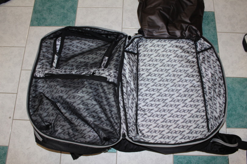 Im Inneren befinden sich an der Deckelseite noch 2 Zip-Fächer, die mit Mesh vom Rest getrennt sind. So zum Beispiel können Unterwäsche, oder Accessoire, wie Arm-, Beinlinge, oder Handschuhe einzeln verpackt werden und damit schnell wieder gefunden werden. Zudem steht noch ein einklickbares Nassfach zur Verfügung, in das dreckige Kleidung oder die Wetsuit nach dem Wettkampf eingelagert werden können.